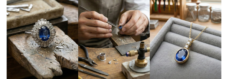 熟練の職人が古い枠から宝石を外し、新しい枠へと美しくセッティングします。