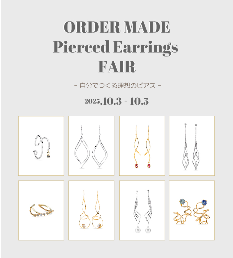 いろんな素材を選んで自分だけのオリジナルピアスを作ってみませんか?3日間限定でオーダーメイドデザイン、ピアスパーツをご用意して皆様のお悩みに合わせてご提案いたします。