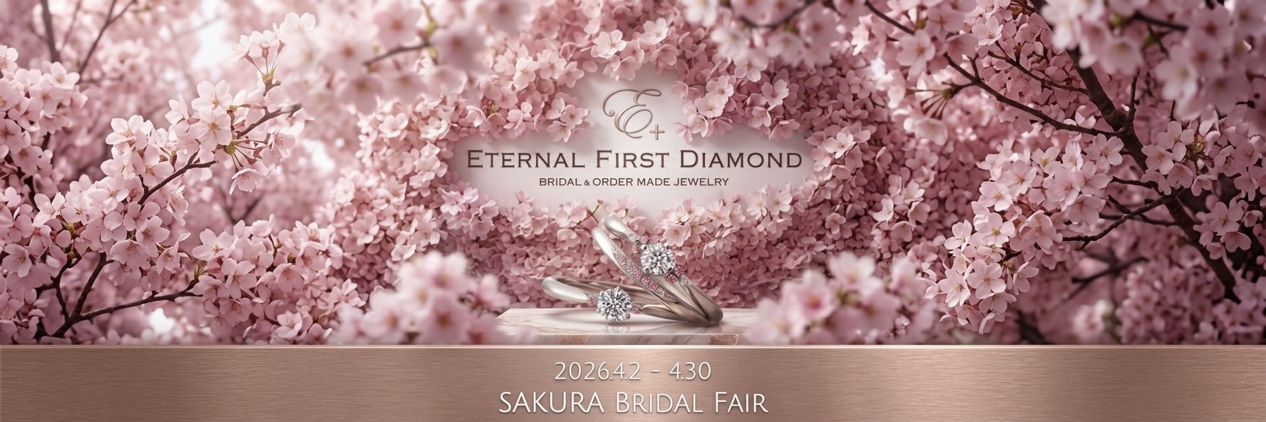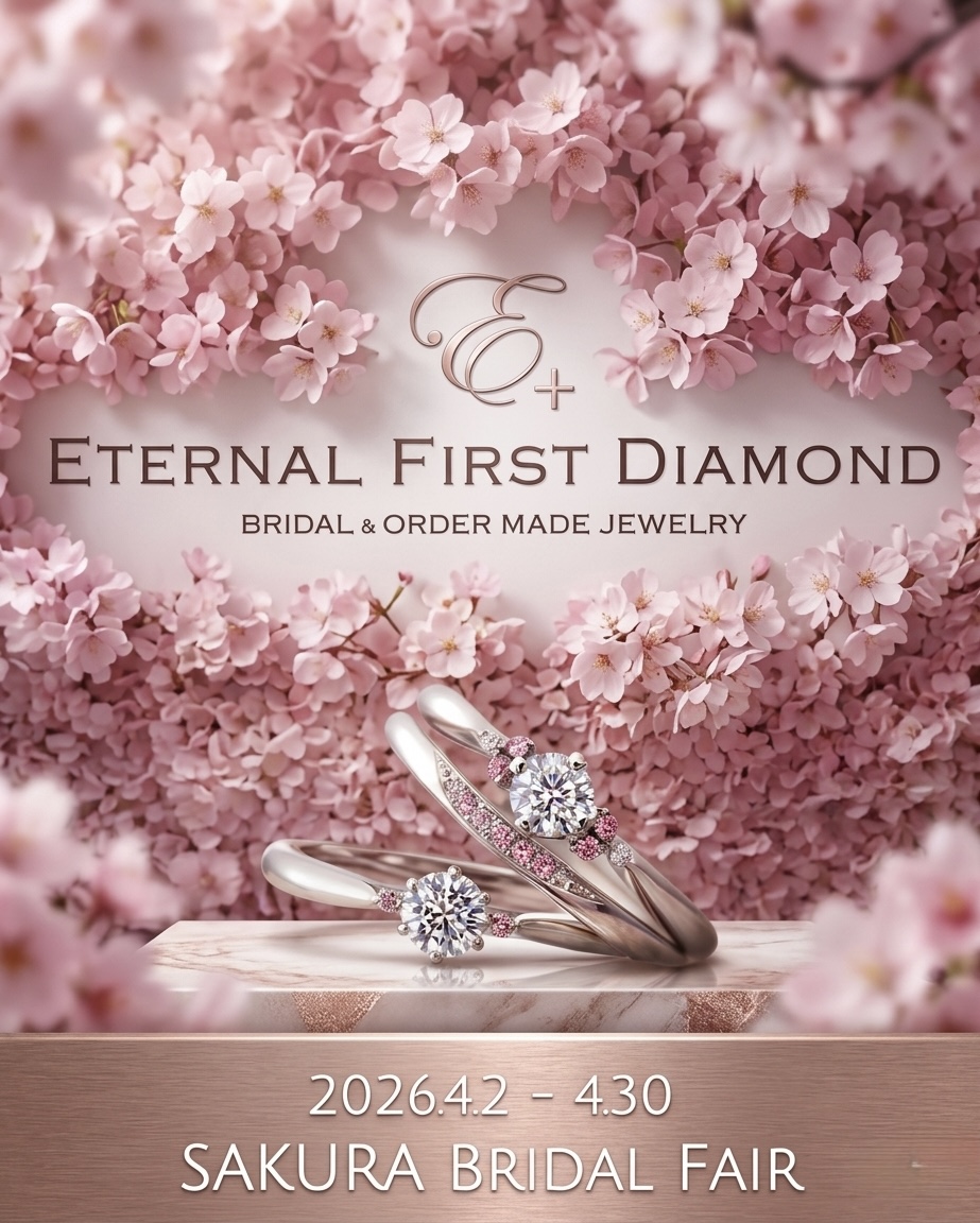 指輪選びの時間は、もっと楽しく、もっとおいしく。フェア期間中は、ふわりと春香る特製ドリンクとスイーツでおもてなしいたします。ショーケースに並ぶきらめくリングを眺めながら、ホッと一息つけるカフェタイムをご用意。「ジュエリー店は緊張する」という男性も、美味しいスイーツと一緒なら自然と笑顔に。
