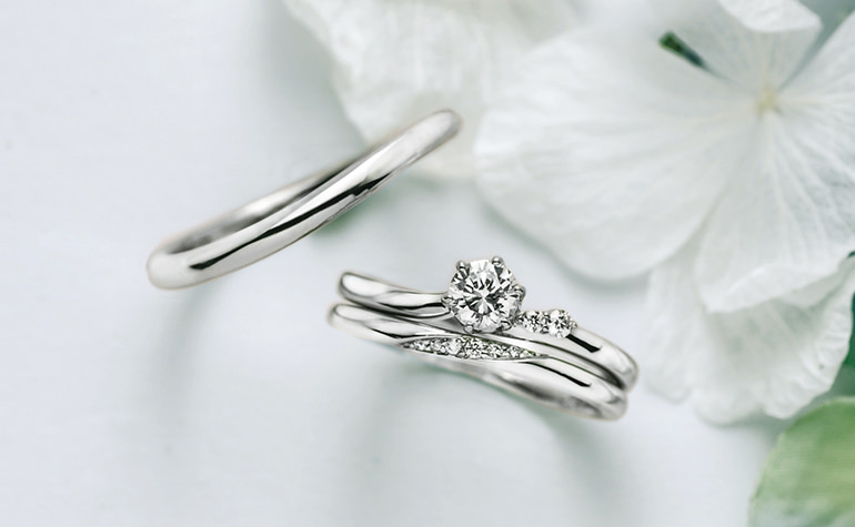 シンプルなセットリングは、日常生活でも違和感なく馴染みやすいデザインです。ETERNAL静岡がセレクトしているシンプルなセットリングはシンプルな中にもふたりらしさを表現できるリングが揃っています。